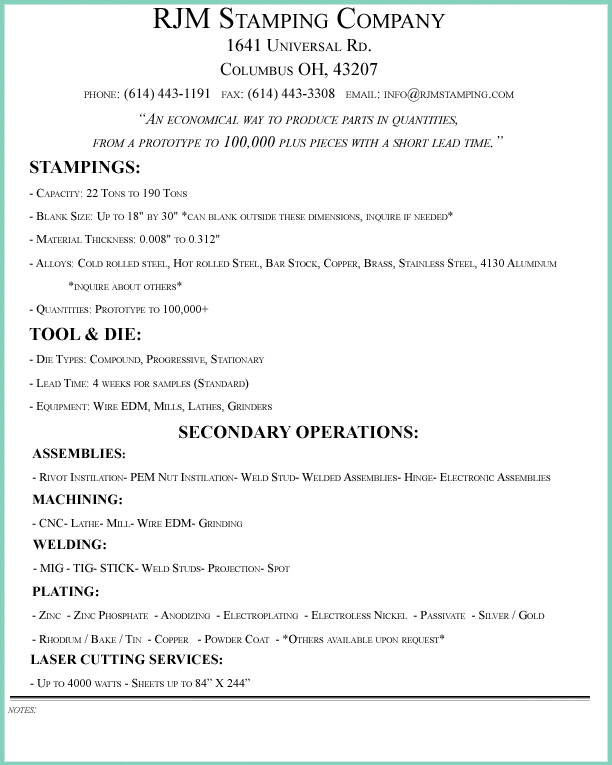 If you would like any other information please feel free to contact us. Thank you, RJM Stamping Company